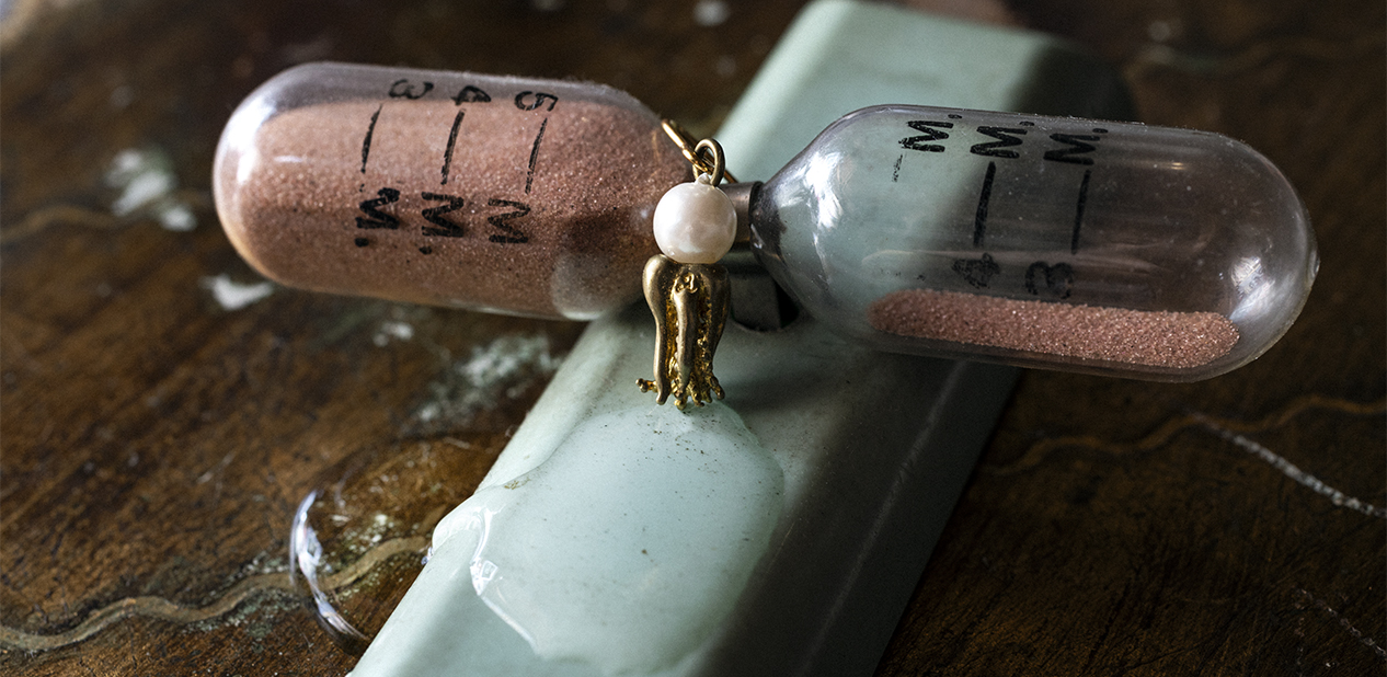世界中を旅して探し集めた、アンティーク、vintageのパーツやインスピレーションなどの『gifts』を元に、見た人から笑顔がこぼれるような、ちょっとひねりのあるモノを創り出していきます。ブランド名でもある「Aquvii」には、アクビのように、人から人へと少しずつ伝染していけばいいな、という思いが込められています。