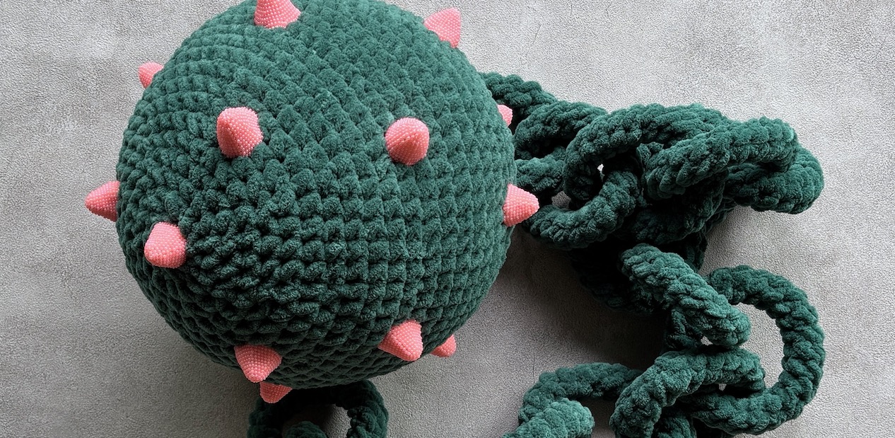 スカルやトゲ、鎖など強さを象徴するモチーフを、ビーズクロッシェという繊細な編みの技法で表現し、内にある“優しい強さ”を形にしています。