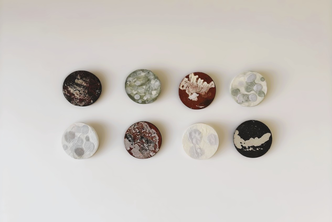 土の種類や、水分の含ませ方、定着のさせ方やタイミングによって、模様や質感が違ってきます。